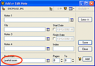 5. Press the Save button to save the new Bookmark then Close to close the Add or Edit Note window.