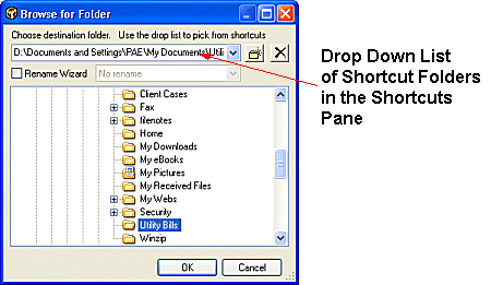 3. In the Browse for Folder select the destination for the Shortcut to the selected file