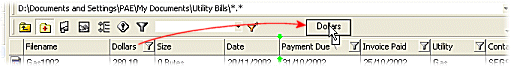 When changes are made to the column view (resizing, moving columns, changing titles, making columns visible) the current folder will take on a custom view status displayed in the FNO status bar. This custom view will be used when that folder is accessed unless a view template is specified (see Saving Columns Templates)