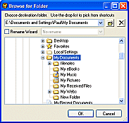 - Choose destination from the Browse for Folder window