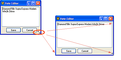 2. The Note Editor window can be enlarged by dragging the lower right corner of the window