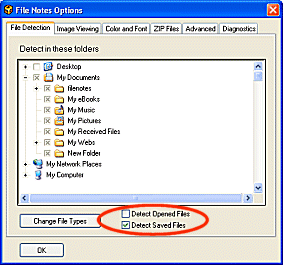 3. Check the boxes to Detect Opened File and/or Saved Files