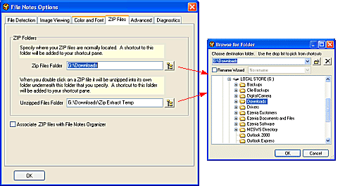 The zip files tab enables you to specify default folder locations associated with zip files
