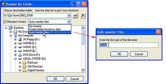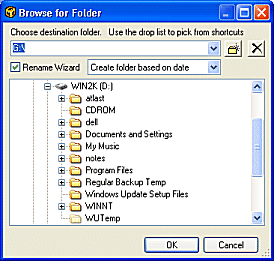 6. Check the Rename Wizard checkbox to create a new folder at the destination. The new folder name will be the current date in the format year_monthday