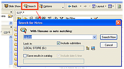 FNO3 provides a powerful Note search facility for locating notes across all drives. The results of the search are displayed in the File List Pane