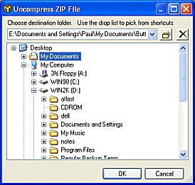3. Double click on the file in the File List Pane to access the Uncompress ZIP File window to choose the destination folder into which to extract the Zip file contents
