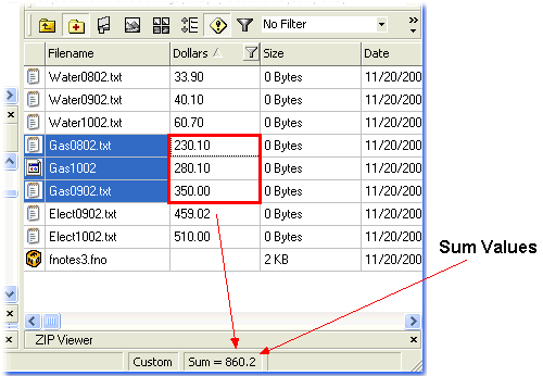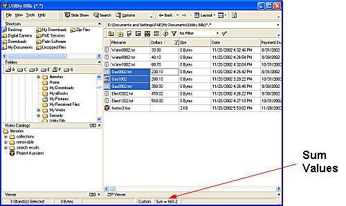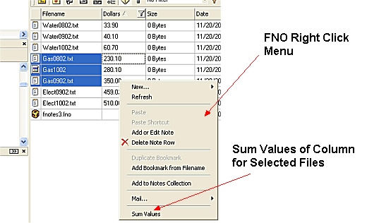 FNO3 includes a feature for calculating the sum value of a Notes column of selected files in the File List Pane